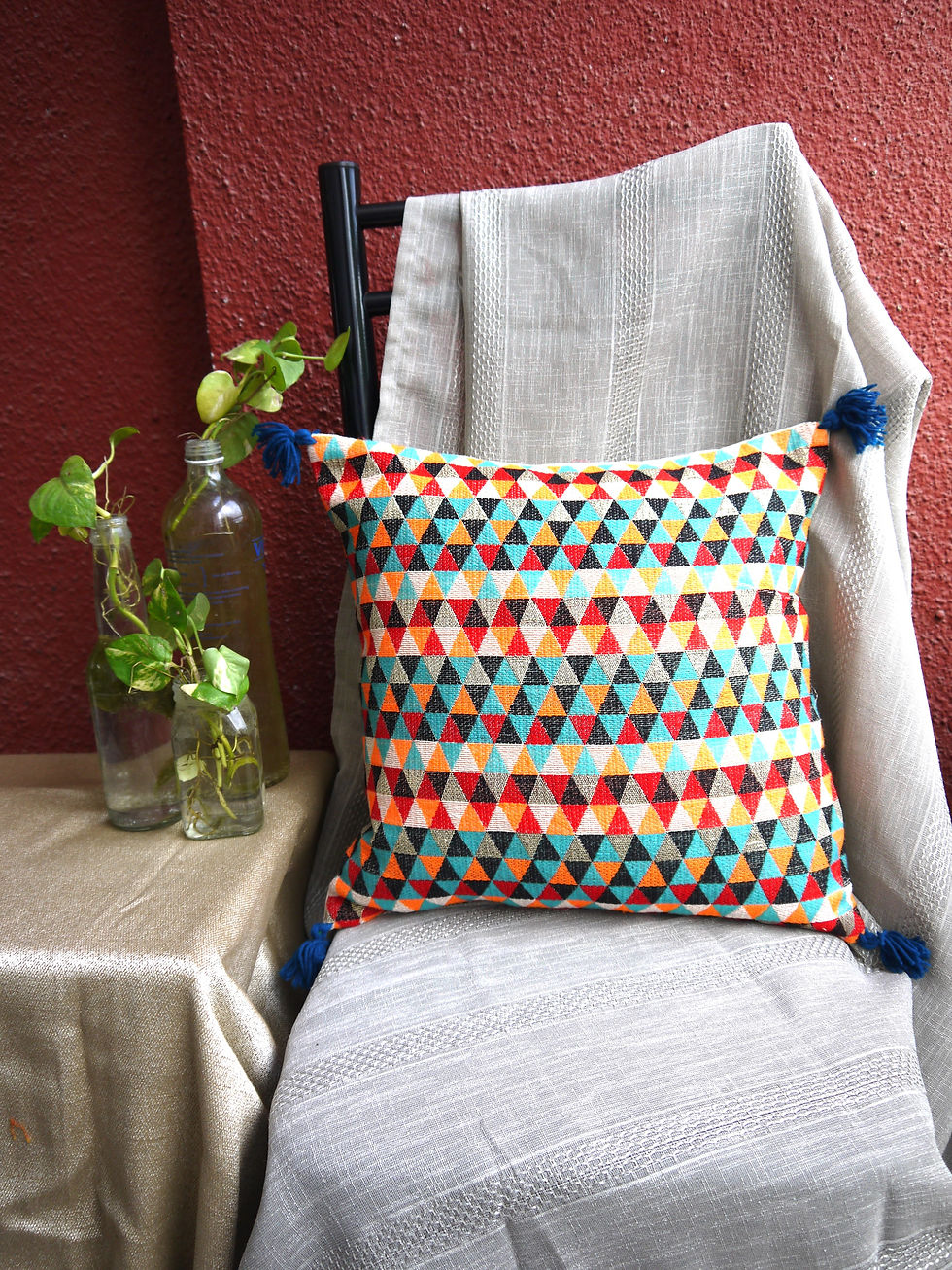 Designer Cotton Handloom Cushion Covers with corner Tussels - Multicolour